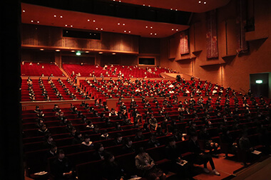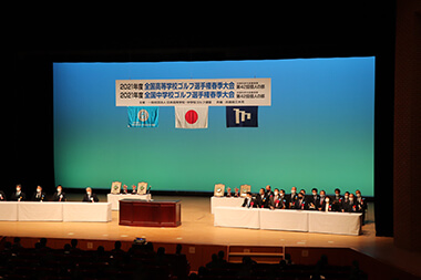 選手・学校関係者、約700人が参加する中、日本高等学校・中学校ゴルフ連盟会長の中曽根弘文氏、文部科学大臣の末松信介氏、三木市長の仲田一彦氏の祝辞の後、講演を実施。
