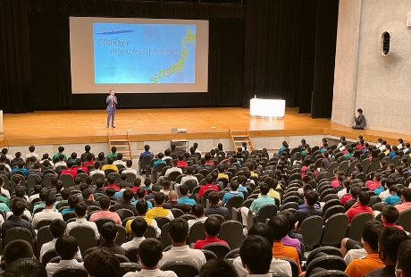全国中学校・高等学校ゴルフ連盟での講演2022年には、全国中学校・高等学校ゴルフ連盟選手権大会の開会式で、700名の関係者に向けて講演を行いました。スポーツを行っている若者に、健康の大切さを改めて認識してもらい、より長くスポーツを楽しんでもらいたいという想いでお話ししています。